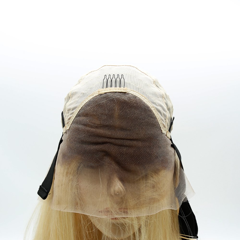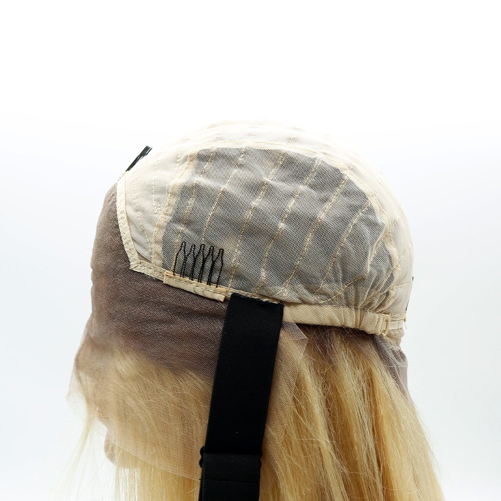 This wig is our custom made lace wig. The front lace is so breathable and natural. The back has stretch mesh and elastic to fit a variety of head sizes. The clips on the sides also allow for better fastening.We could make the root color,which follow customers’requirement.