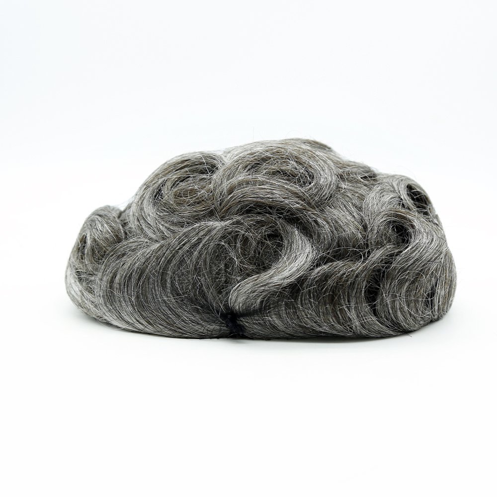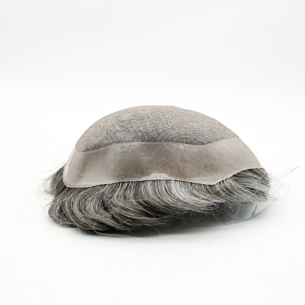 The toupee is Eminent Hair custom men’s toupee. The toupee base design is Fine Mono with PU coated all around . The fine mono material is very durable and breathable. The PU edge can use tape or glue easily. Any base size and hair color can be made accordingly.