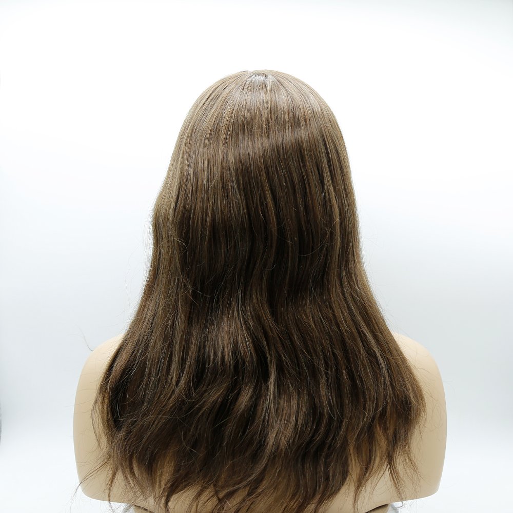 The women full wig is our Eminent Hair custom made women full wig.The production time is about 10-12 weeks and in rush for 6-8 weeks. The fine mono top and NPU edge are both strong and durable. There are elastic nets on both sides, which can make the base more elastic and convenient to wear. The life span is around 9-12 months or even longer if treated well.
