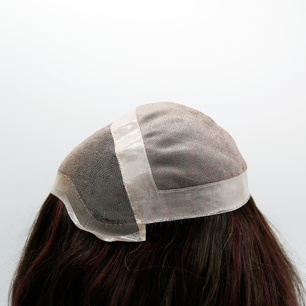 This wig is fine mono and French lace in center and pu coated around. Fine mono center is more durable and breath. This material can withstand heavier hair densities. The material of French lace is more comfortable. We will make a zigzag shape in front, making the hairline more natural.