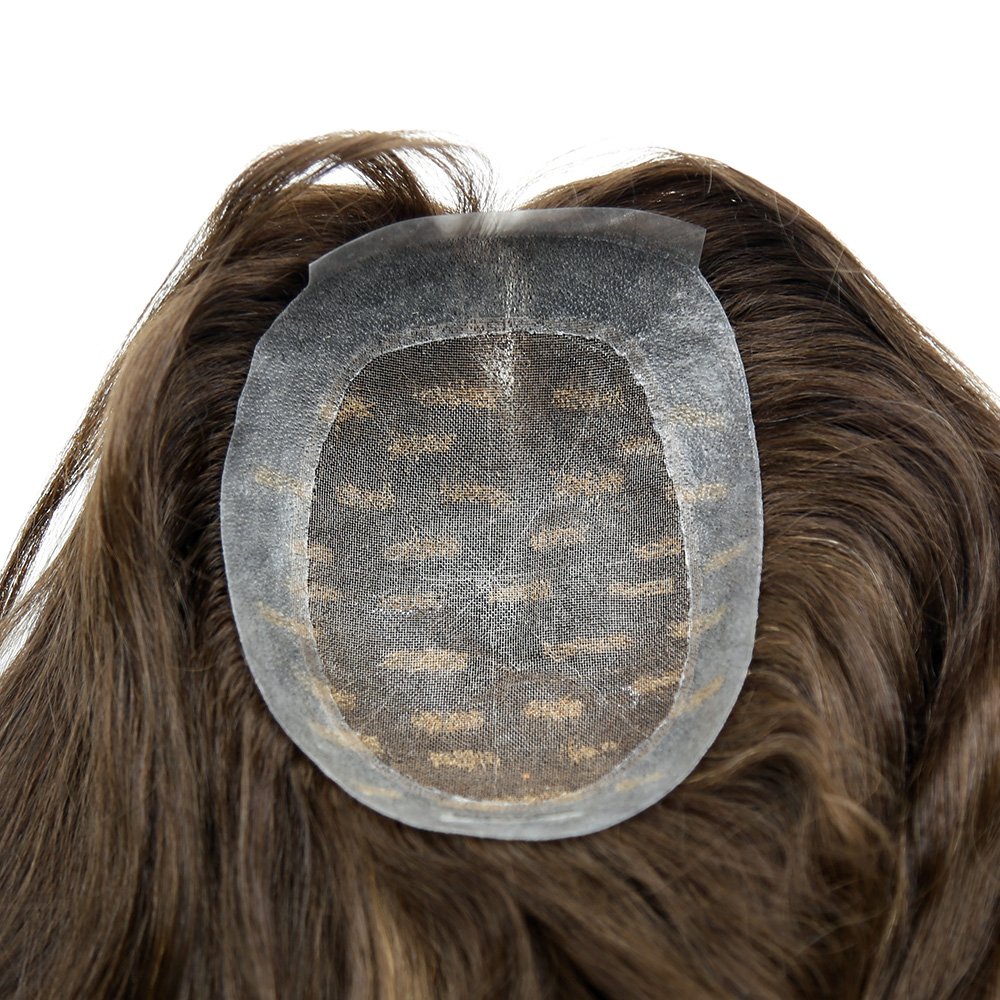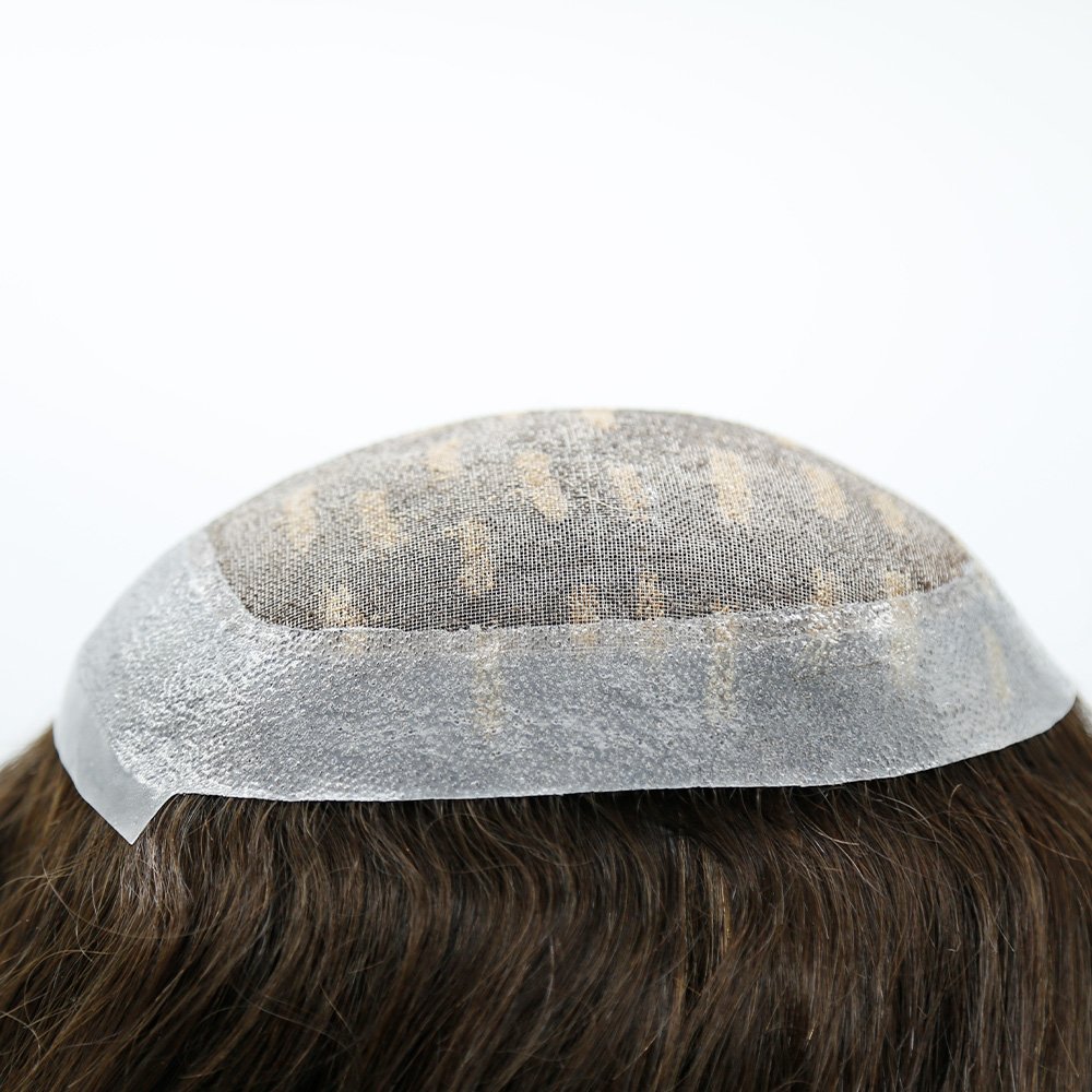 This hair replacement is custom made lace topper. The lace is breathable and soft. Customers could put the tape on PU edge easily. It can be finished in 8weeks and rush for 4-6 weeks. The life span is around 6-9 months or even longer if treated well.