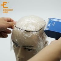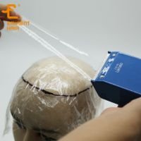 Clean the customer’s scalp so you have a smooth surface ,stretch saran wrap over head, you need to cover the entire bald area with the wrap and secure it below the chin.